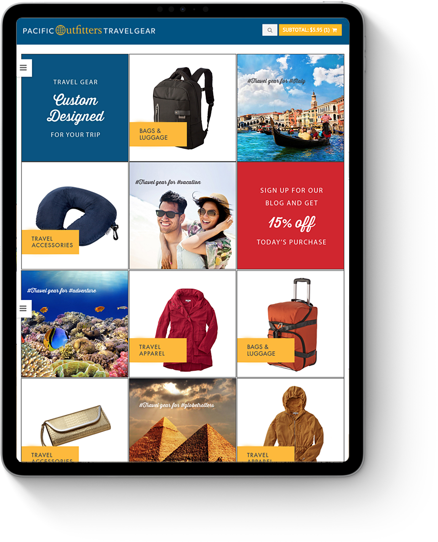 The Pacific Outfitters Travel Gear ecommerce website and social media campaign encouraged customers to connect and shop from their destinations across the globe.